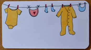 Dit is het kaartje voor vandaag. Ik heb het gemaakt voor het DT van het Through The Craft Room Door challengeblog. De leuke stempel die ik gebruikt heb heet Baby Washing Line en is van Little Claire